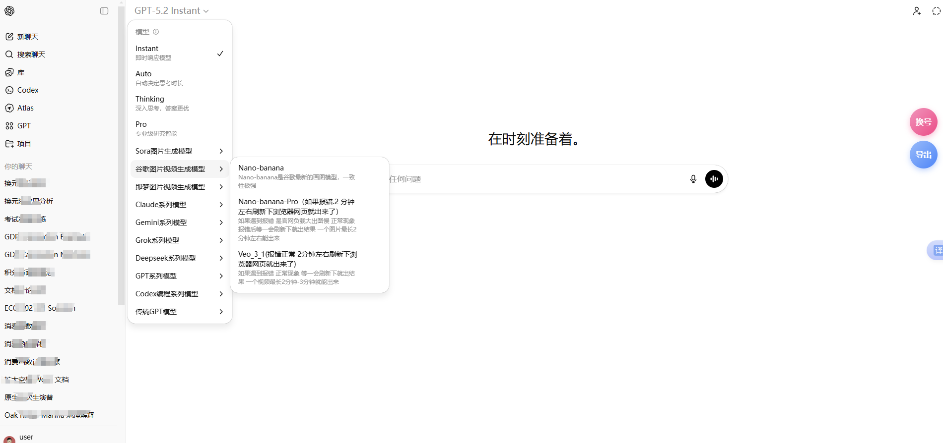 openai旗下pluu会员全部模型:(5.2、Sora、GPT-5.3-codex)等
